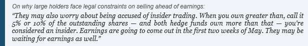 The analyst was asked directly why SRS and Pentwater had not yet exited their positions, given the extraordinary price appreciation. His response identified the Section 16 insider trading constraint as a secondary barrier to exit, layered on top of the structural prisoners’ dilemma dynamic that both analysts had independently documented.