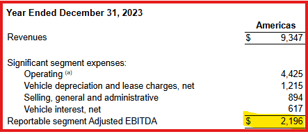 Second, used vehicle prices reached historic highs. Avis was selling vehicles at a gain or with minimal depreciation, a dynamic that directly inflated reported margins and obscured the true cost structure of the fleet. In 2023, net gains on vehicle sales reached $656 million, a figure that contributed directly to that year’s $2.2 billion Americas Adjusted EBITDA.