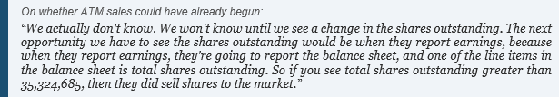 The analyst was asked directly whether the at-the-market equity facility established on March 27, 2026, represented a live relief valve for the squeeze. His response identified the MNPI constraint as the primary barrier, consistent with our analysis, though stopping short of the four additional hard stops documented in our original 424B5 forensic review.