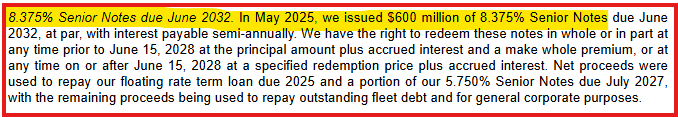 The May 2025 issuance of $600 million in 8.375% Senior Notes (the highest coupon in its recent history) further increased financing costs while being used in part to refinance existing obligations rather than reduce leverage.