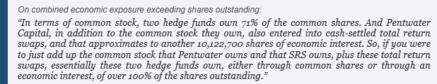 When asked to characterize the structural ownership dynamic driving the squeeze, the analyst provided a precise accounting of the combined economic exposure held by the two dominant funds. His framing centered on the distinction between common stock ownership and cash-settled total return swap exposure: