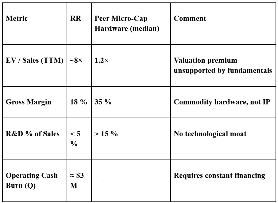 [1] Additional reference: Capybara Research, “Richtech Robotics (NASDAQ: RR) – A China Hustle Wrapped in Patriotic Branding” (September 30 2025)